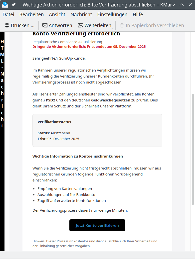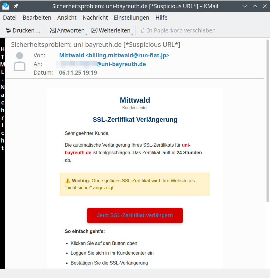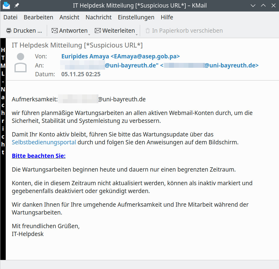 Schad-E-Mail vom 05. November 2025: ACHTUNG PHISHING